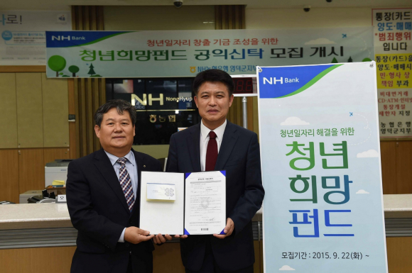 이희진 영덕군수는 지난 15일 NH농협은행 영덕군지부를 찾아 민간 일자리창출 지원 사업을 위한 ‘청년희망펀드(공익신탁)’에 가입해 기부를 약정했다.