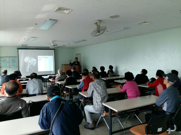 포항시시설관리공단 노인복지회관은 20일 대구한의대 부속 포항한방병원 이운규 교수를 초청해 ‘경추디스크 예방 및 관리’를 주제로 무료특강을 실시했다. 노인복지회관은 이용 어르신들의 건강증진과 여가선용은 물론 삶의 질 개선을 위한 건강․교육․문화강좌 혼합 평생교육 프로그램으로 어르신 눈높이에 맞춘 유익하고 다양한 특강을 매달 실시하고 있다. |