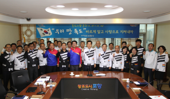 포항시 전 직원이 독도사랑 티셔츠를 입고 한마음으로 뜻을 모아 독도수호 의지를 다짐했다.