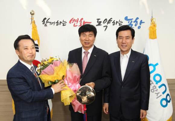 |  | | | ↑↑ (사진 왼쪽부터)김태원 한국농어촌공사 포항지사장, 이종부 소장, 이강덕 포항시장. | | ⓒ GBN 경북방송 | |
