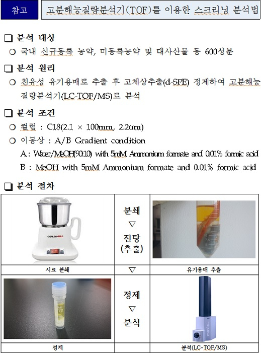 - 국내 최초, 잔류농약 600성분 동시 검출 분석법 개발로 농약사용 오·남용 원천 차단