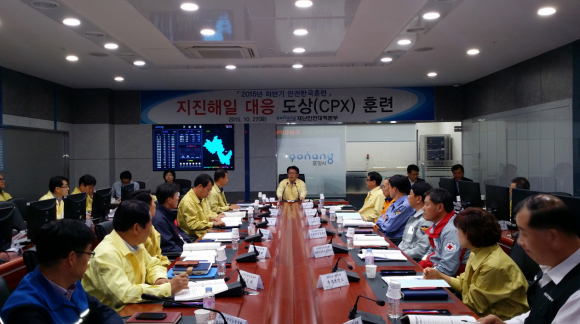 포항시가 27일 포항시 재난종합상황실에서 관련부서와 유관기관 30여명이 참석한 가운데 지진해일 내습상황을 가정해 지진해일 대응 도상훈련을 실시했다.