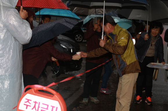 성주군의회 이성재 의장을 비롯한 전 의원은 10월27일 어제 성주전통시장일(5일장)을 맞아 새벽부터 비가 오는 가운데도 전통시장주변의 불법노점 및 노상적치물 합동 단속에 나선 공무원들을 찾아가 직접 커피를 나누어 주면서 격려하고,