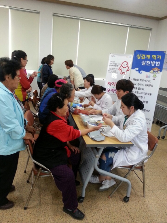 교육 참가자들에게 혈압과 혈당, 합병증 예방검사 등 기초검진 및 싱겁게 먹기 홍보관을 운영하여 싱겁게 먹기 실천 및 식품 속 소금량 바로알기 모형전시와 싱겁게 먹기의 필요성을 알리고 동시에 대상자에게 유익한 건강정보를 제공하였다.