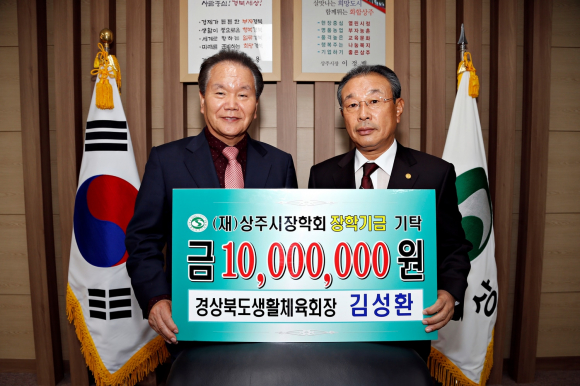 김성환 경상북도생활체육회장, 상주시장학회 장학금 1,000만원 쾌척