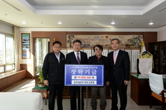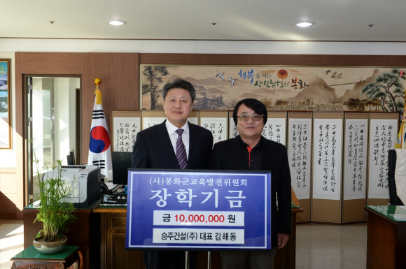 지난 10월 30일(금) 봉화의 우수 향토기업인 승주건설(주) 김해동 대표가 (사)봉화군교육발전위원회에 장학금 1천만원을 기탁했다.