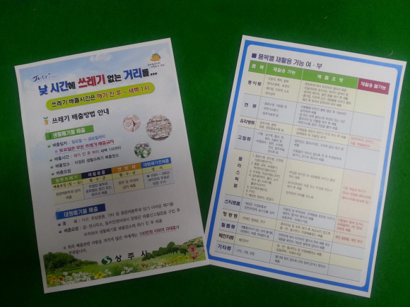 상주시는 나날이 늘어나는 생활쓰레기 배출량을 줄이기 위해 일과를 마친 환경미화원들이 관내 상가 및 주택지를 돌면서 배출방법을 계도하는 등 시민들의 의식개혁에 발 벗고 나섰다.