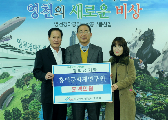 지난 9일 (재)홍익문화재연구원(원장 김수남)에서 500만원, 경북산업개발(주)에서 200만원의 장학기금을 재단법인 영천시장학회(이사장 김영석)에 기탁했다.