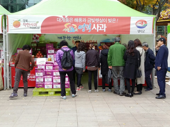 영덕군(군수 이희진)은 오는 9일부터 3일간 경북의 사과주산지 15개 시군과 공동으로 수도권 소비자에게 경북사과의 우수성 홍보를 위해 서울광장에서 열리는 ‘2015 경북사과 홍보행사’에 참여해 타 지역과는 차별화 된 영덕 특유의 맛있는 사과로 도시 소비자의 입맛을 사로잡았다.