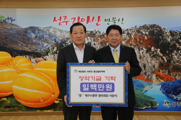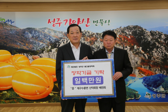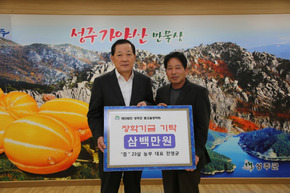 “23살 농부” 대표 전영균 3,000,000원, 성주군합창단 운영위원회(단장 김석영) 2,000,000원, 오로라라이트 뱅크 대표 고영국 2,000,000원, 재구수륜면 향우회장 이문석 1,000,000원, 재구수륜면 산악회장 배천희 1,000,000원을 (재)성주군별고을장학회에 기탁했다.