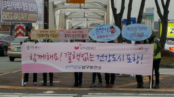 포항시 남구보건소는 13일 형산로터리 일대에서 출근시간 시민들을 대상으로 ‘365일 결핵예방’이라는 슬로건 아래 결핵예방관리 캠페인을 실시했다.