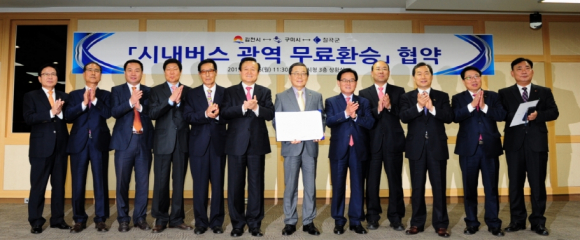 김천시(시장 박보생), 구미시(시장 남유진), 칠곡군(군수 백선기)은 16일 오전 구미시청 3층 상황실에서 시내버스 광역 환승 업무협약식을 갖고 오는 12월 1일부터 3개 시ㆍ군 전 지역에서 시내버스 광역환승제를 시행하기로 합의했다.