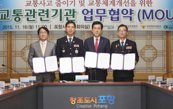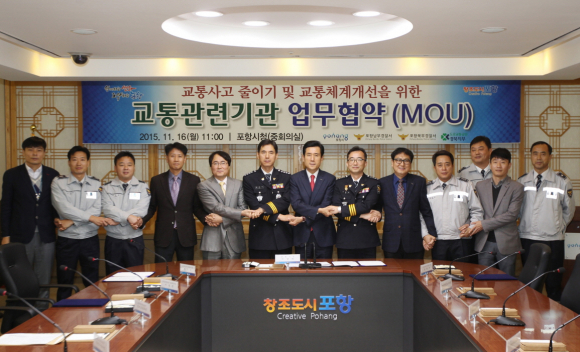 포항시가 16일 시청 중회의실에서 교통사고 줄이기 및 교통체계 개선을 위한 교통관련기관간 업무협약을 체결했다.