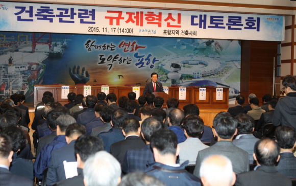 포항시가 17일 시청 대회의실에서 지역의 건축사회원과 측량협회 회원, 건축허가 및 의제되는 부서의 공무원 등 140여명이 참석한 가운데 ‘건축 관련 규제혁신 대토론회’를 개최했다.