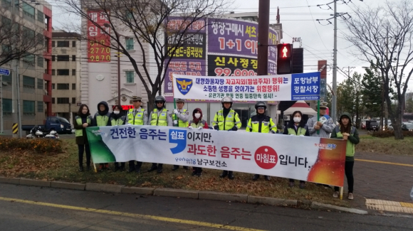 남구보건소 관계자는 “연말연시가 다가옴에 따라 술자리가 많아질 것으로 예상된다”며 “과도한 음주행위를 지양하는 건전한 음주문화를 조성하는데 협조를 당부한다”고 말했다.