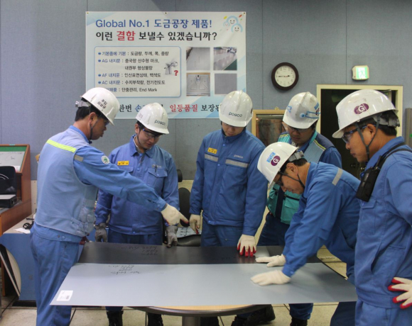 |  | | | ↑↑ 지난 25일, 포항제철소 도금공장 직원들이 '품질TBM' 활동으로 전날 발생한 불량재에 대한 점검과 조치결과 등을 공유하는 모습. | | ⓒ GBN 경북방송 | |