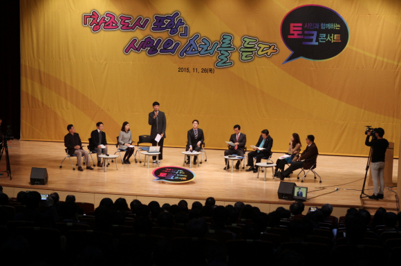 토크콘서트는 기존의 보고회 형식을 탈피해 청년, 여성, 기업인, 시민단체로 구성된 시민대표들과 이강덕 시장, 이칠구 의장 등 창조도시추진위원과 분과위원장들이 패널로 나서 시민들이 원하는 포항시의 모습에 대한 진솔한 이야기를 듣고, 포항시의 변화와 발전방안을 모색하는 시간을 가졌다.