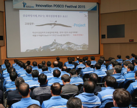 포스코(회장 권오준)가 12월 3일 고유의 혁신방법론인 POSTIM의 성과와 우수사례를 공유하는 ‘IP(Innovation POSCO) Festival 2015’를 개최했다.