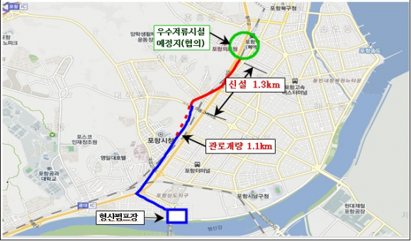 시는 내년에 하수도 정비대책 수립 및 기본·실시설계를 마치고, 2017년부터 2019년까지 폐철도부지를 이용해 우수저류조설치 및 하수관로 2.4km 정비, 하수관로 퇴적물 준설, 형산빗물펌프장 증설 등을 실시할 계획이다.