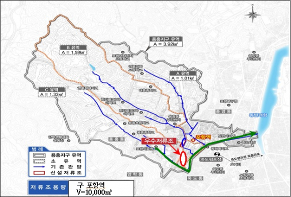 이에 따라 포항시는 도심 상습침수 문제 해결을 위한 총사업비 315억원 중 220억원을 환경부로부터 지원받게 됐다.
