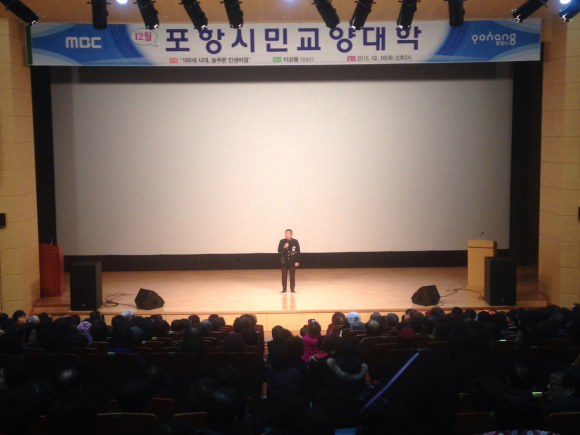 포항시 평생학습원은 10일 평생학습원 덕업관 대강당에서 방송인 이상용 씨를 초청해 ‘100세 시대 늘 푸른 인생비결’이라는 주제로 시민 400여명이 참석한 가운데 포항시민교양대학을 개최했다.