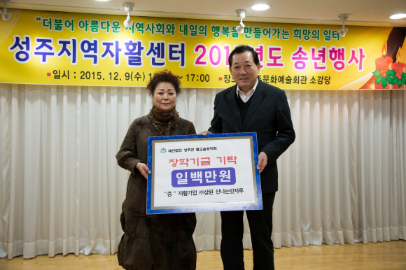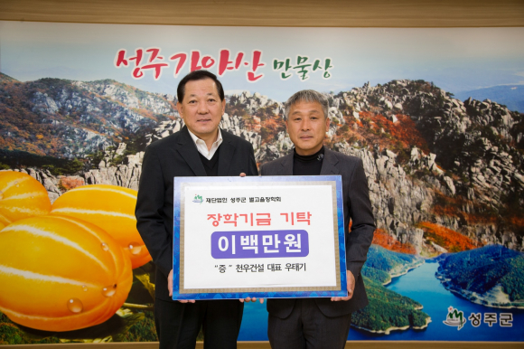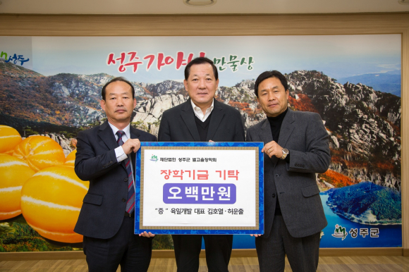 성주군 축산단체협의회 10,000,000원, 육일개발 대표 김호열‧허운출 5,000,000원, 천우건설 대표 우태기 2,000,000원, 자활기업 ㈜상원 신나는 빗자루 1,000,000원을 (재)성주군별고을장학회에 기탁했다.