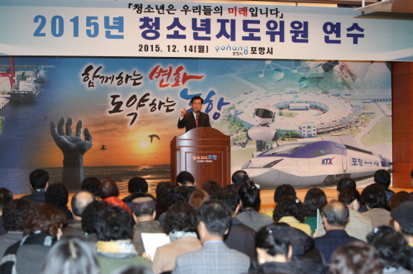 포항시가 14일 시청 대회의실에서 청소년지도위원들을 대상으로 ‘2015년 포항시 청소년지도위원 연수’를 실시했다.