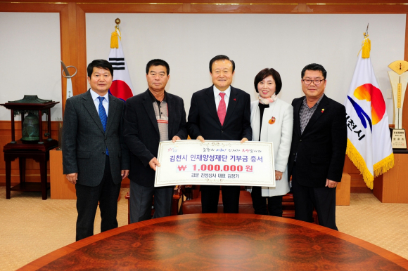 |  | | | ⓒ GBN 경북방송 | | 김천시 미래를 위한 우수인재육성과 김천교육발전을 위해 조성 중인 김천시인재양성재단(이사장 박보생)에 감문면 기관단체장, 체육회, 이장협의회, 감문진성상사에서 11일 오후 김천시청을 방문하여 장학기금 13,350천원을 기탁했다.