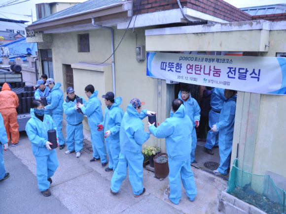 이번 후원은 포스코 화성부 직원들의 정성을 모은 250여 만원을 소외되고 외로운 취약계층의 어르신들에게 연탄으로 지원되었다.
