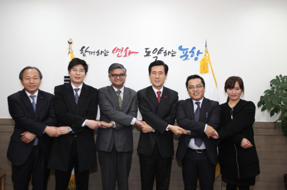 주한인도대사관 우펜더 씽 라왓(Upender Singh Rawat) 부대사와 미지토 비니투(Mijito Vinito)상무관, 정덕민 주한인도명예총영사 일행 3명이 15일 포항시를 방문했다.