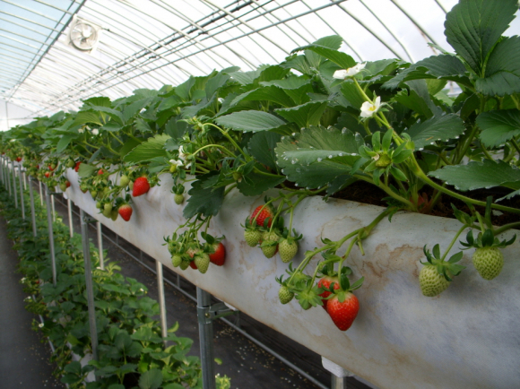 고설수경재배는 벤치위에 베드를 만들고, 베드에 배지를 담아서 딸기를 심고 양액을 공급해 재배하는 방식으로, 하루 종일 허리를 굽혀 작업하는 토경재배와는 달리 정식부터 수확까지의 전 작업을 선 자세로 하기 때문에 고강도 노동에서 해방될 수 있다.