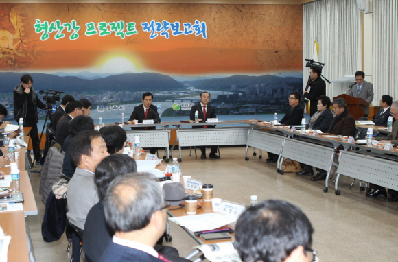 이날 보고회에서 이강덕 포항시장은 “형산강 프로젝트는 경북도와 포항시, 경주시, 시민단체, 전문가, 연구기관이 함께 참여하고 서로의 힘을 모아온 결과”임을 강조하고, “상생 프로젝트 성공모델로 속도감 있는 추진을 주문한 김관용 도지사의 화합리더십과 최양식 경주시장의 탁월한 추진력, 80만 포항·경주 시민들의 관심과 지지가 모여 큰 동력이 되었다”며,