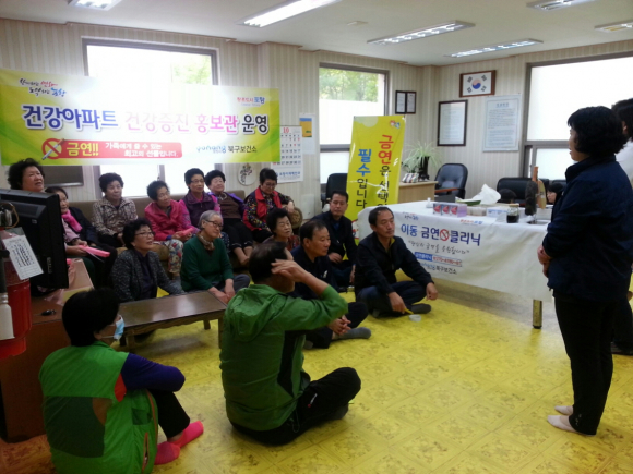 참여한 건강아파트 흡연율은 18.9%로 2014년 포항시 북구 19.8%에 비해 낮게 나타나 건강아파트 사업의 긍정적인 효과를 보았고 건강아파트 운영의 인지도는 87.9%로 대체적으로 건강 아파트 운영의 인지도가 유지됐다.