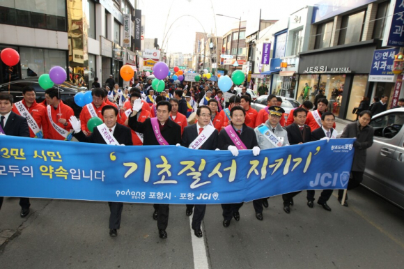 포항시가 22일 중앙상가 실개천 거리에서 유관기관, 사회단체, 일반시민 등 600여명이 참여한 가운데 ‘기초질서 지키기’ 범시민 캠페인을 가졌다.