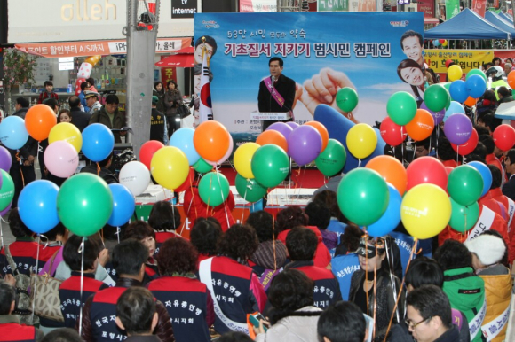 이날 행사는 노래하는 좋은 사람들(회장 권성호)의 공연을 시작으로 기초질서 풍선나누기, 풍물놀이, 결의문 낭독, 악습타파 퍼포먼스, 거리캠페인 순으로 진행됐다.