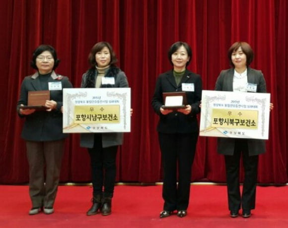 포항시 남·북구보건소가 22일 경북도청 강당에서 열린 ‘2015년 경상북도 지역사회통합 건강증진사업 성과대회’에서 우수기관으로 선정됐다.