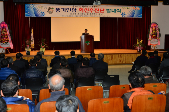 영주시는 소비자에게 신뢰와 믿음을 주고 풍기인삼의 옛 명성을 회복하기 위해 인삼재배 생산자 단체, 가공업체, 유통․판매업체, 그리고 인삼축제․홍보 단체 등이 참여하는 『풍기인삼 혁신추진단』을 구성하여 12월 22일(화)14:00 풍기 문화의 집 대강당에서 발대식을 개최했다.