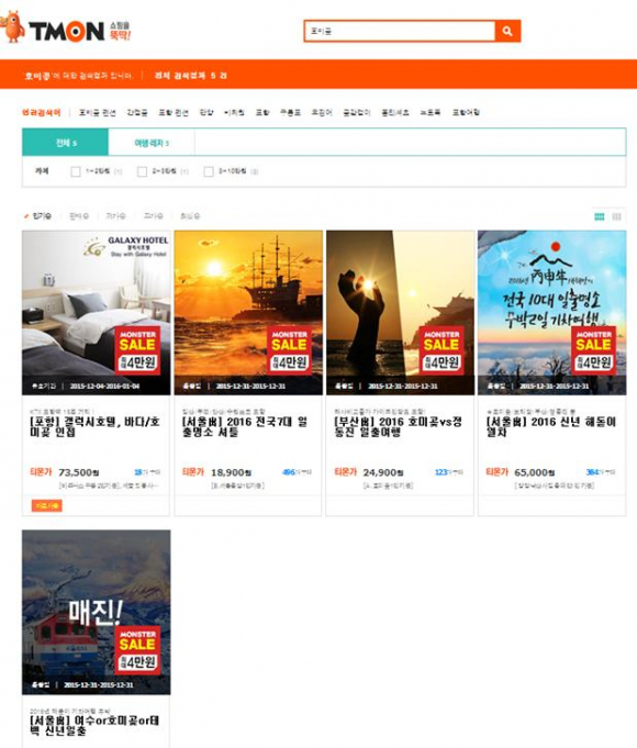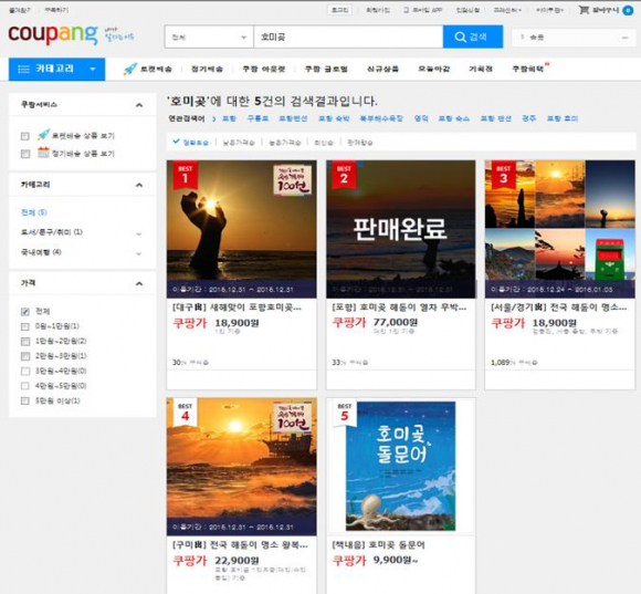 - 국내 대표적 소셜커머스 티몬과 쿠팡, 위메프에서 호미곶 해맞이축전 연계 상품 판매 인기