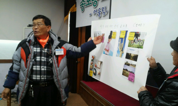 특히 이날 수업은 이론뿐만 아니라 콜라주 퍼실리테이션 기법(미술에서화면에 종이․인쇄물․사진 따위를 오려 붙이고, 일부에 가필해 작품을 만드는 일)을 통해 주민들이 직접 ‘미래의 우리 동네’를 가보는 실습을 해봄으로써 주민공동체에서 실질적인 각자의 역할을 생각해보고 주민들간 소통의 계기를 마련하는 시간을 가졌다.