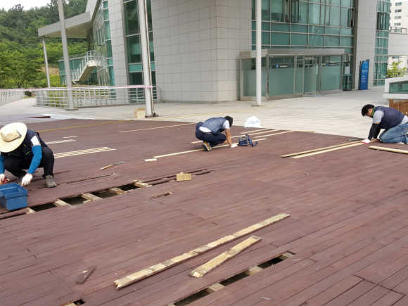 |  | | | ↑↑ 청사 자체정비-데크수선 | | ⓒ GBN 경북방송 | |