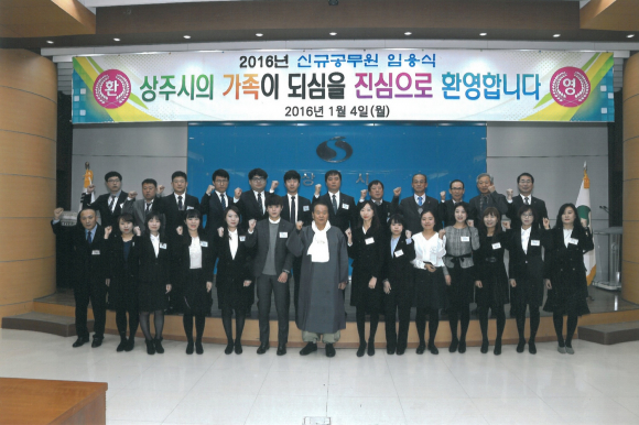 상주시는 4일 시청 대회의실에서 공직에 첫발을 내딛는 신규 공무원 22명에 대한 임용식을 가족이 함께하는 가운데 가졌다.