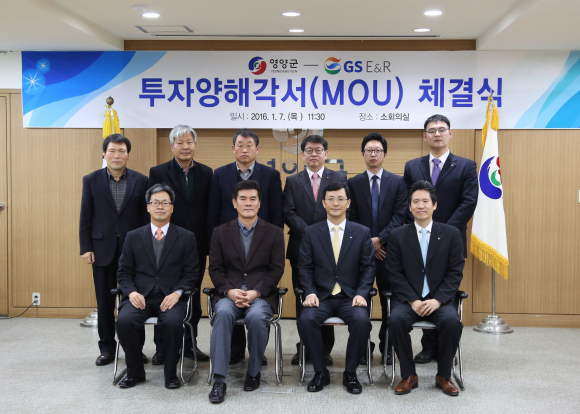 1월 7일 11시 30분 영양군청 소회의실에서 권영택 영양군수와 김석환 (주)GS E&R 부사장이 참석한 가운데 영양군과 (주)GS E&R 간 "육상풍력발전단지 조성에 관한 투자양해각서"를 체결하였다.