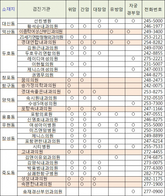 국가암검진 및 암환자 의료비지원에 대한 기타 자세한 사항은 포항시 남북구보건소(남구 270-4203, 북구 270-4253)로 문의하면 된다.