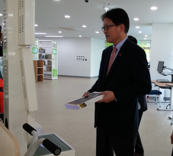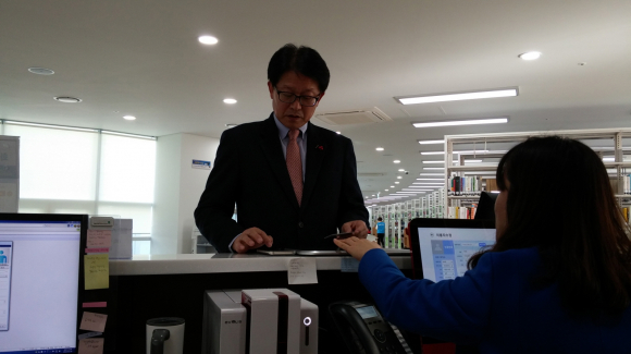 또한 이날 직접 도서관 회원으로 가입, 무인대출반납시스템을 이용해 도서를 대출하기도 했다.