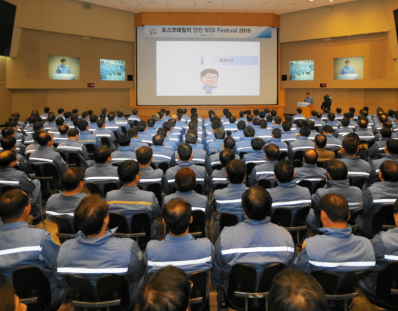 이날의 ‘안전 SSS(Self-directed Safety Spread; 자기 주도의 안전활동 확산) Festival’은 포스코패밀리의 주요 안전활동에 관한 지난해 실적과 2016년 추진계획을 공유하고, 자기 주도의 안전활동 내실화 및 기본의 실천문화 체질화의 의지를 다지기 위해 개최됐다.