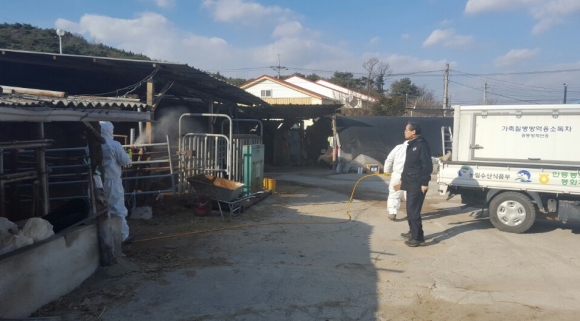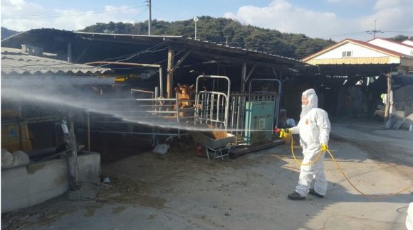 전업농가 및 축산관련 시설 등은 자체 소독하고 소규모 농가는 축협 공동 방제단 차량으로 소독을 실시하였으며, 축산차량에 대해서도 차량 내・외부를 소독실시 했다.