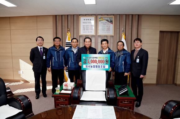 외서농업협동조합 지종락 조합장을 비롯한 임원들이 상주시장학회가 추진하는 장학기금 200억원 달성계획에 동참하고자 14일 상주시청을 방문해 장학금 500만원을 기탁하였다.
