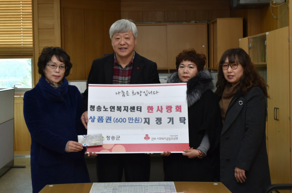 지난 19일, 청송노인복지센터(센터장 문정화) 소속 요양보호사 모임인 한사랑회(회장 김영숙)는, 지역 내 독거노인을 비롯한 취약계층 가구에 도움이 되고 싶다며 600만원 상당의 농협상품권을 군청 주민생활지원과(과장 이경우)를 방문해 전달하였다.