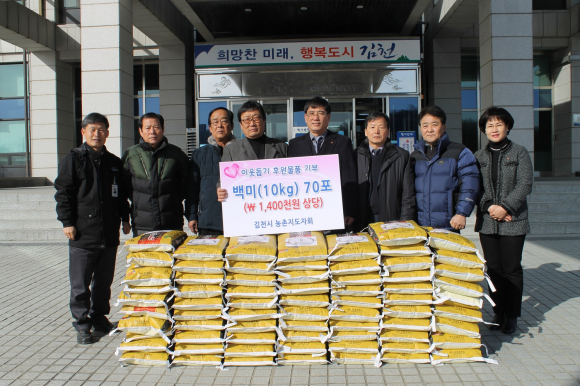 한국농촌지도자김천시연합회(회장 김홍수)에서는 민속고유의 설명절을 맞아 관내 독거노인 및 결손가정에 백미 10kg 70포(현금 140만원 상당)의 따뜻한 온정의 손길을 나누었다.