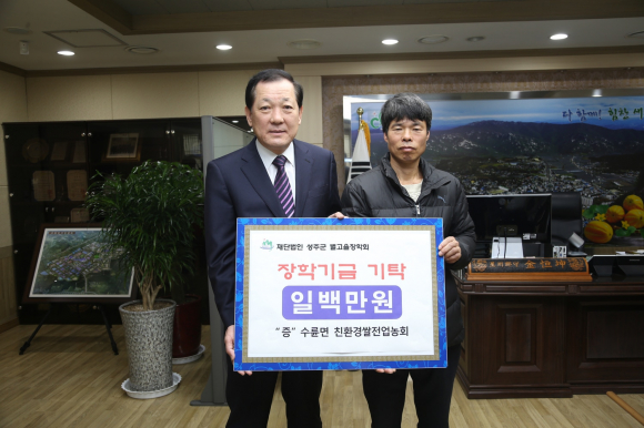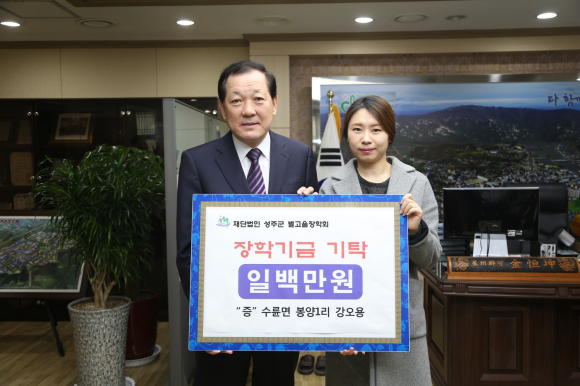 김항곤 (재)성주군별고을장학회 이사장은 “장학금 기탁에 적극 동참해 준 김후락님, 상수도 급수공사 대행업체, 여권택님, 수륜면 친환경쌀전업농회, 박천호님, 강오용님, 안아롱님, 박성삼님, 여갑숙님, 석상식님께 감사드리며, 목표액 100억원 기금 조성을 조기달성으로 향후 장학사업을 더욱 확충하여 지역 인재 육성 개발을 위한 기반을 다져 나가겠다”고 밝혔다.